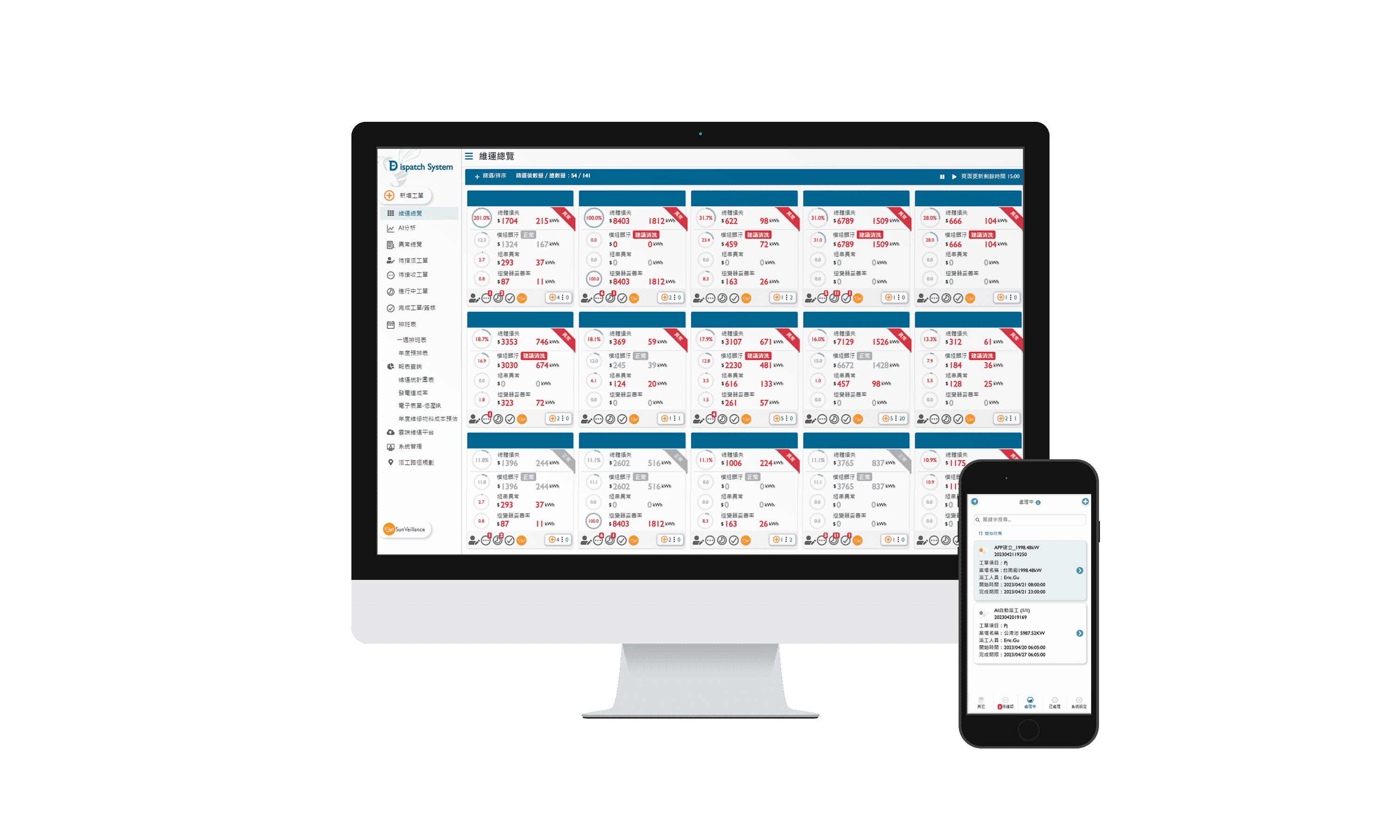 全流程运维管理包括云端监控工具、、AI分析与智慧自动派工及运维APP,,实现电厂自主管理。。。